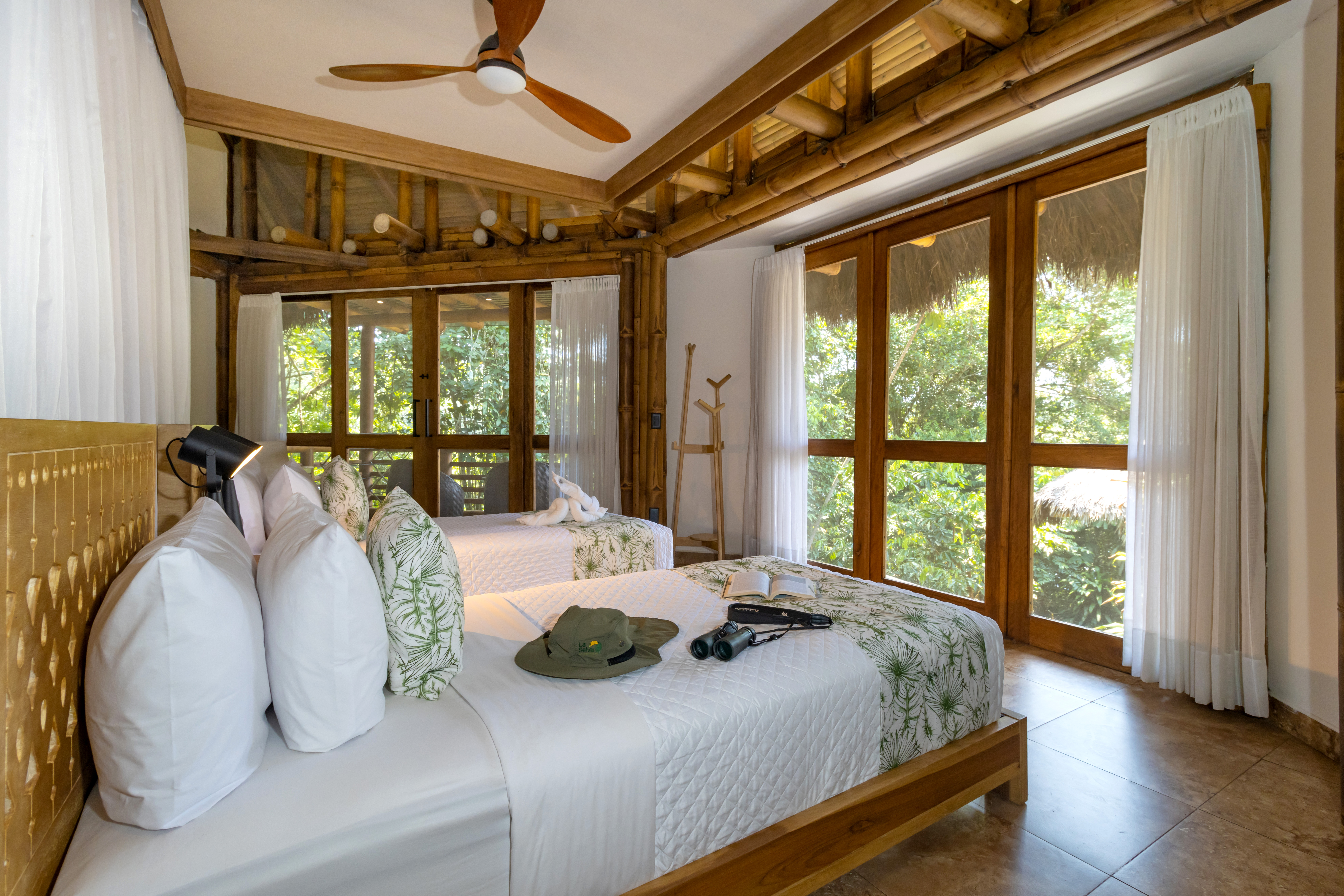 As part of a deep commitment to sustainable ecotourism, the suites do not include air conditioning. Instead, large screened windows and ceiling fans ensure a fresh, comfortable environment with minimal environmental impact.